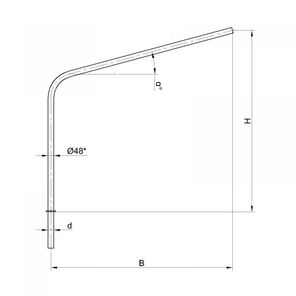 Однорожковые кронштейны К2-1,7-1,3-1-1 предназначен для крепления светильника на трубчатой опоре освещения. Завод опор освещения «Альдекс» изготавливает однорожковые консольные кронштейны из стального проката. Собственное производство позволяет выполнять изделия надлежащего качества и в кратчайшие сроки. Конструкция однорожковых кронштейнов К2-1,7-1,3-1-1. Конструкция консольных однорожковых кронштейнов К2-1,7-1,3-1-1 представляет собой гнутую металлическую трубу заданных размеров.