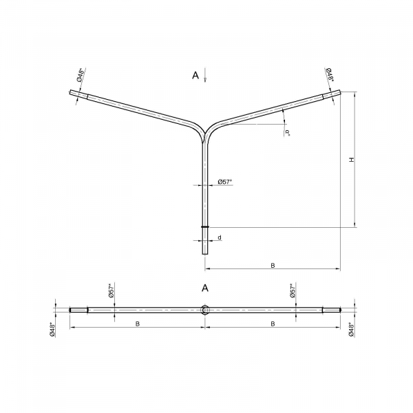 Двухрожковые кронштейны К3-2,5-2,0-1-1 предназначены для крепления светильника на трубчатой опоре освещения.