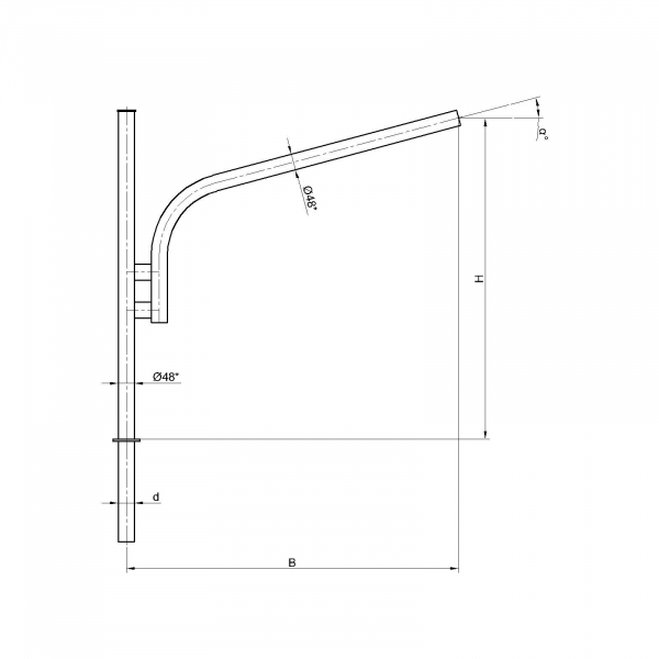 Однорожковые кронштейны К71-1,0-1,5-0-1 предназначен для крепления светильника на трубчатой опоре освещения. Завод опор освещения «Альдекс» изготавливает однорожковые консольные кронштейны из стального проката. Собственное производство позволяет выполнять изделия надлежащего качества и в кратчайшие сроки. Конструкция однорожковых кронштейнов К71-1,0-1,5-0-1. Конструкция консольных однорожковых кронштейнов К71-1,0-1,5-0-1 представляет собой гнутую металлическую трубу заданных размеров.