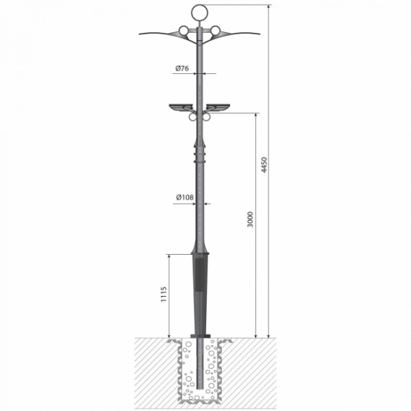 Декоративная опора "Колизей" - 2 - 5,4 предназначена для освещения парков, скверов, набережных, аллей, коттеджных посёлков, прилегающих территорий.