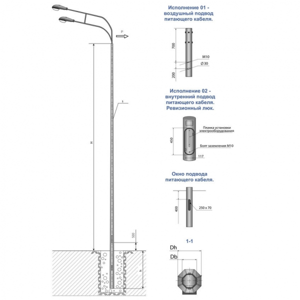 Опора СПГ-1000-9,0/11,5-02-ц — силовая прямостоечная гранёная опора. Применяется для освещения автостоянок, АЗС, дворов, автодорог, а также для крепления рекламных щитов, информационных стендов.