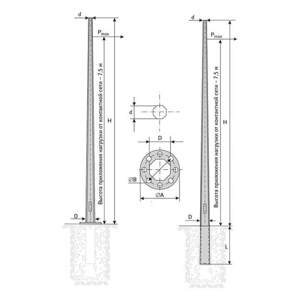Опора силовая ОГСКС изготовлена из стального проката. Это гранёная конструкция с одним продольным швом, что повышает её прочность и даёт возможность использовать достаточно высокие нагрузки.