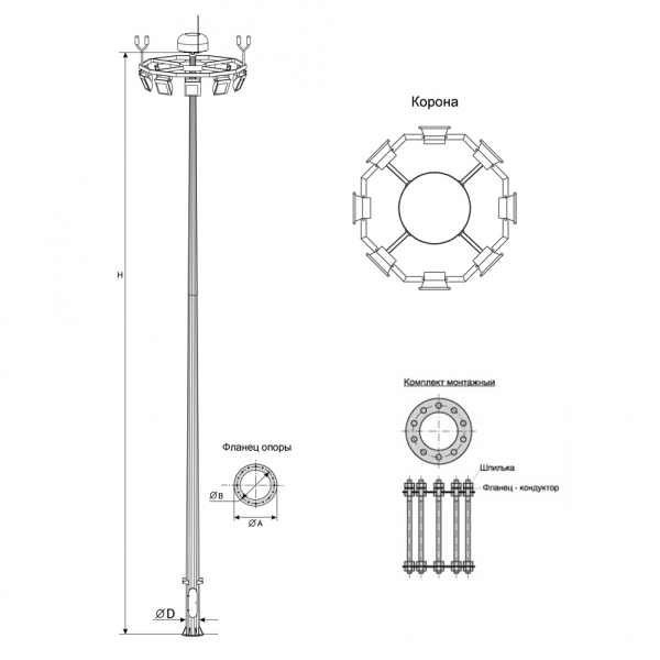 Прожекторная мачта освещения металлическая оцинкованная ПМО-35, изготовленная по ГОСТ.